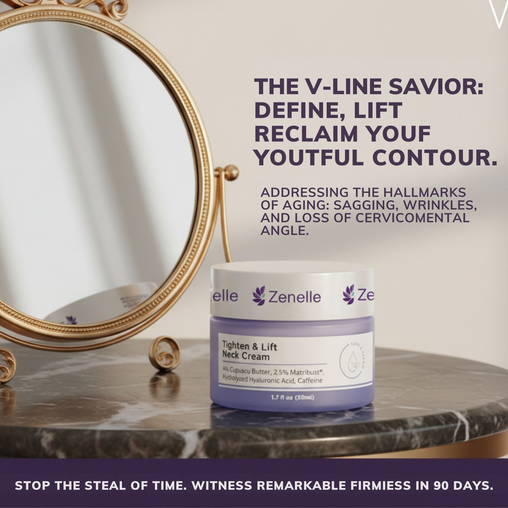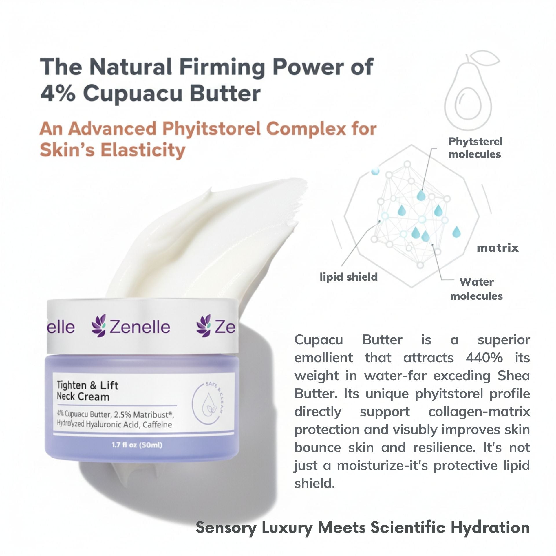 6% MicroTight4™ Complex: The core biotechnological complex, the heart of the formula, is designed to target the root causes of sagging and loss of firmness.