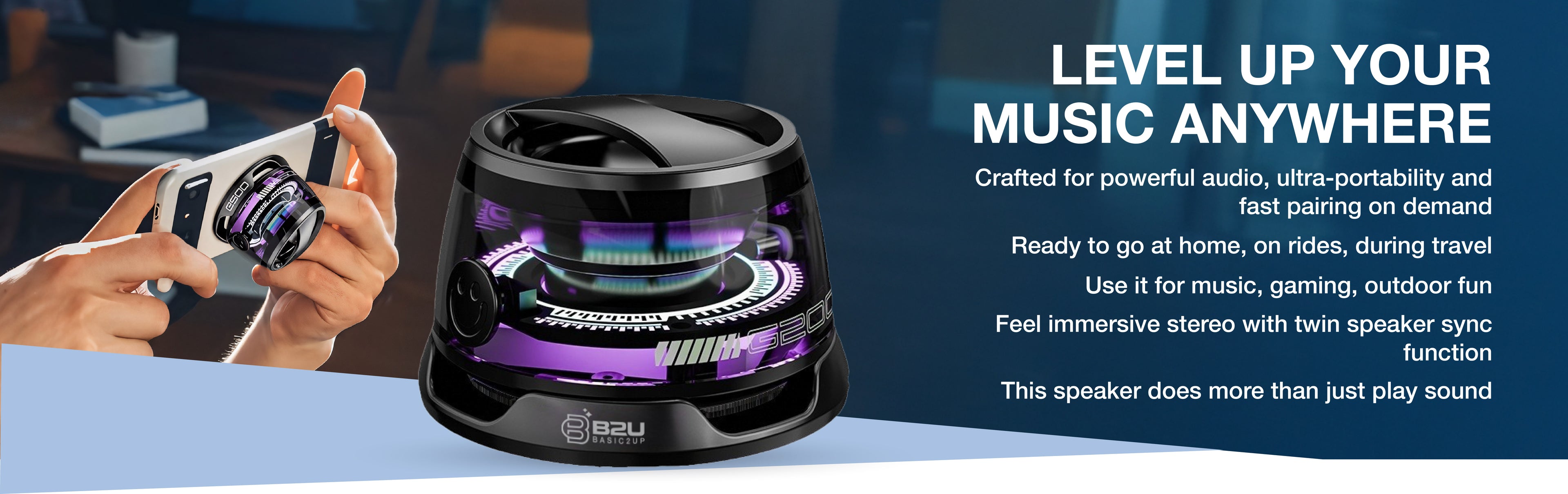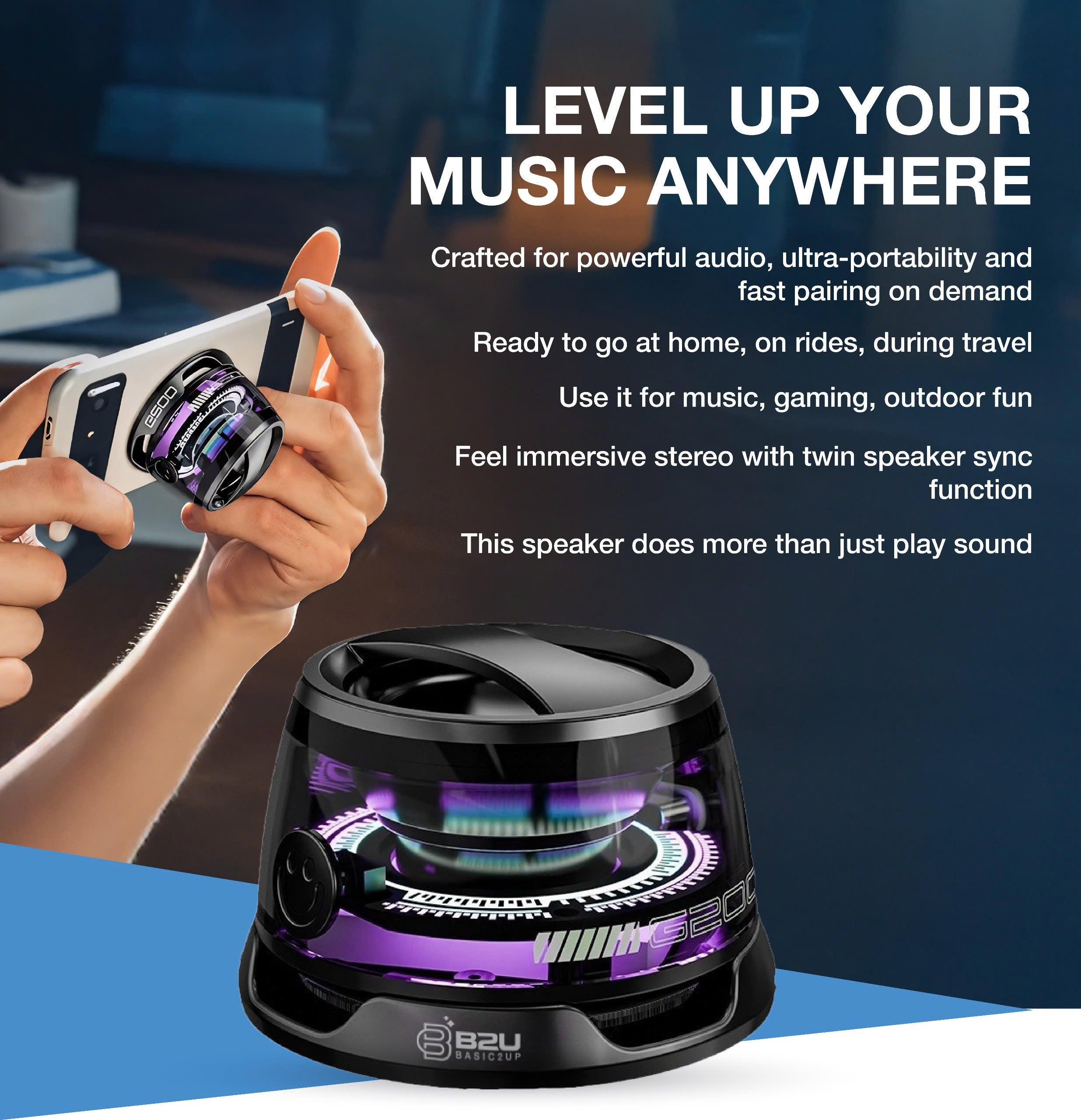 Bring your music to life with B2U® SonicBright™ RGB Magnetic Speaker. Crystal-clear sound, dynamic RGB lighting, and rugged portability – perfect for every adventure